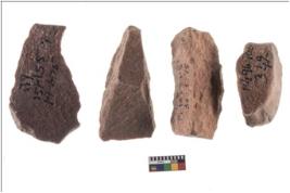 | Description / विवरण | Four worked utilised flakes with sharp edges. |