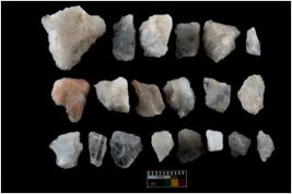 | Description / विवरण | Specimen of a fluted cores having several broad fluted marks indicating the detached blades from it. |
