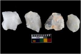 | Description / विवरण | There are n-4 of intact utilized flake cores made up of Quartz. Some of them have bulge of percussion and some are flat flakes. |