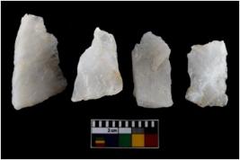 | Description / विवरण | There are n-4 of intact utilized flake cores made up of Quartz. Some of them have bulge of percussion and some are flat flakes. |