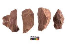 | Description / विवरण | Four worked utilised flakes, most of them bearing sharp edges. |
