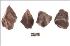 | Description / विवरण | Four worked utilised flakes with sharp edges. |
