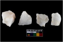 | Description / विवरण | There are n-4 of intact utilized flake cores made up of Quartz. Some of them have bulge of percussion and some are flat flakes. |