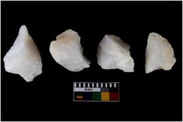 | Description / विवरण | There are n-4 of intact utilized flake cores made up of Quartz. Some of them have bulge of percussion and some are flat flakes. |
