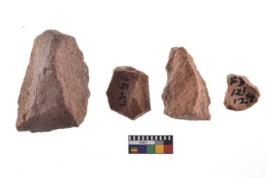 | Description / विवरण | A specimen of flake tool with prominent flaking marks. It made up of a short flakes with sides trimmed. It is rectangular in shaped. |