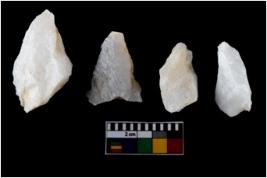 | Description / विवरण | There are n-4 of intact utilized flake cores made up of Quartz. Some of them have bulge of percussion and some are flat flakes. |