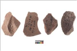 | Description / विवरण | Four worked utilised flakes with sharp edges. |