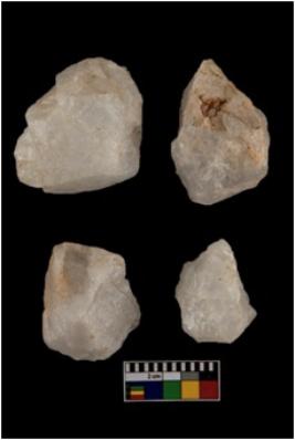 | Description / विवरण | There are n-4 of cores. All are made up of Quartz. All of them are intact fully fluted cores without any trace of crested ridge flakes. |