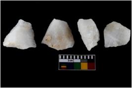 | Description / विवरण | There are n-4 of intact utilized flake cores made up of Quartz. Some of them have bulge of percussion and some are flat flakes. |
