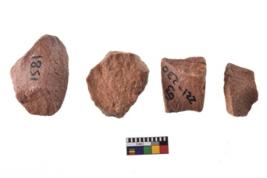 | Description / विवरण | A specimen of flake tool with prominent flaking marks. It made up of a short flakes with sides trimmed. It is rectangular in shaped. |