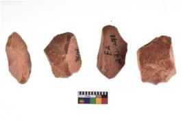 | Description / विवरण | A specimen of flake tool with prominent flaking marks. It made up of a short flakes with sides trimmed. It is rectangular in shaped. |