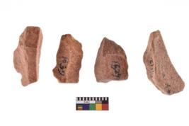 | Description / विवरण | A specimen of flake tool with prominent flaking marks. It made up of a short flakes with sides trimmed. It is rectangular in shaped. |
