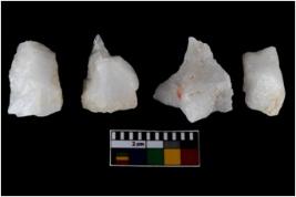 | Description / विवरण | There are n-4 of intact utilized flake cores made up of Quartz. Some of them have bulge of percussion and some are flat flakes. |