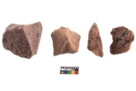 | Description / विवरण | A specimen of flake tool with prominent flaking marks. It made up of a short flakes with sides trimmed. It is rectangular in shaped. |