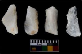 | Description / विवरण | There are n-4 of intact utilized flake cores made up of Quartz. Some of them have bulge of percussion and some are flat flakes. |