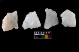 | Description / विवरण | There are n-4 of intact utilized flake cores made up of Quartz. Some of them have bulge of percussion and some are flat flakes. |
