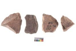 | Description / विवरण | Four worked utilised flakes with sharp edges. |