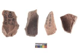 | Description / विवरण | Four worked utilised flakes with sharp edges. |