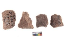 | Description / विवरण | Four worked utilised flakes with sharp edges. |