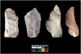| Description / विवरण | There are n-4 of intact utilized flake cores made up of Chert. Some of them have bulge of percussion, some are flat flakes and few are retouched. |