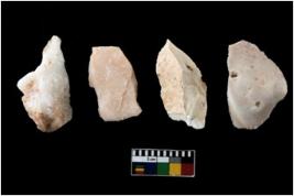 | Description / विवरण | There are n-4 of intact utilized flake cores made up of Chert. Some of them have bulge of percussion, some are flat flakes and few are retouched. |