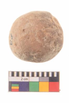 | Description / विवरण | A specimen of a sling ball with rough surface and reddish black colour. |