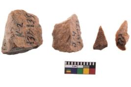 | Description / विवरण | A specimen of flake tool with prominent flaking marks. It made up of a short flakes with sides trimmed. It is rectangular in shaped. |
