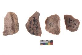 | Description / विवरण | Four worked utilised flakes with sharp edges. |
