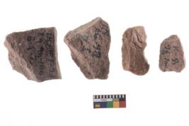 | Description / विवरण | Four worked utilised flakes with sharp edges. |