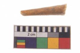| Description / विवरण | Specimen of bone point with conical body and circular in cross section. It is creamish in colour. |