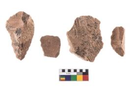 | Description / विवरण | Four worked utilised flakes, most of them bearing sharp edges. |