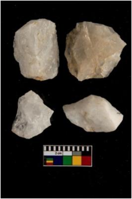 | Description / विवरण | There are n-4 of cores. All are made up of Quartz. All of them are intact fully fluted cores without any trace of crested ridge flakes. |