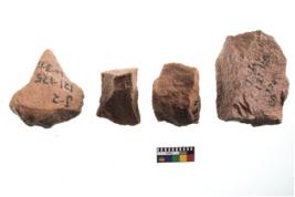 | Description / विवरण | A specimen of flake tool with prominent flaking marks. It made up of a short flakes with sides trimmed. It is rectangular in shaped. |
