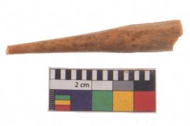 | Description / विवरण | Specimen of bone point with conical body and circular in cross section. It is creamish in colour. |