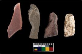 | Description / विवरण | There are n-4 of intact utilized flake cores made up of Chert. Some of them have bulge of percussion, some are flat flakes and few are retouched. |