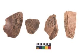 | Description / विवरण | Four worked utilised flakes, most of them bearing sharp edges. |