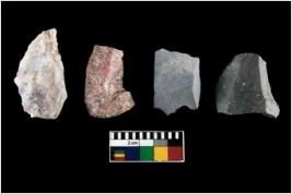 | Description / विवरण | There are n-4 of intact utilized flake cores made up of Chert. Some of them have bulge of percussion, some are flat flakes and few are retouched. |