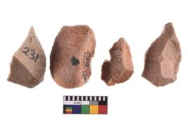 | Description / विवरण | A specimen of flake tool with prominent flaking marks. It made up of a short flakes with sides trimmed. It is rectangular in shaped. |