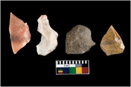 | Description / विवरण | There are n-4 of intact utilized flake cores made up of Chert. Some of them have bulge of percussion, some are flat flakes and few are retouched. |