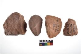 | Description / विवरण | Four worked utilised flakes with sharp edges.Many a times they are pointed at one end. |