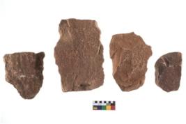 | Description / विवरण | Four worked utilised flakes, most of them bearing sharp edges. |
