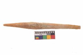 | Description / विवरण | Specimen of bone point with conical body and circular in cross section. It is creamish in colour. |