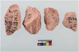 | Description / विवरण | Four worked utilised flakes with sharp edges.Many a times they are pointed at one end. |