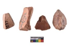 | Description / विवरण | A specimen of flake tool with prominent flaking marks. It made up of a short flakes with sides trimmed. It is rectangular in shaped. |