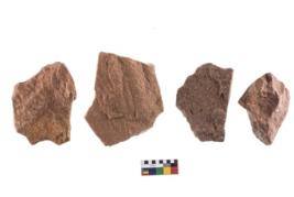 | Description / विवरण | Four worked utilised flakes, most of them bearing sharp edges. |
