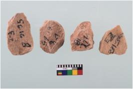 | Description / विवरण | Four worked utilised flakes with sharp edges.Many a times they are pointed at one end. |
