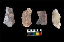 | Description / विवरण | There are n-4 of intact utilized flake cores made up of Chert. Some of them have bulge of percussion, some are flat flakes and few are retouched. |