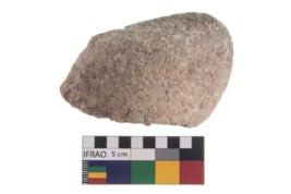 | Description / विवरण | A partially broken portion of a muller with rough surface, it is made of quartzite. It is oval in shape and roughly rectangular in section. |