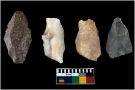 | Description / विवरण | There are n-4 of intact utilized flake cores made up of Chert. Some of them have bulge of percussion, some are flat flakes and few are retouched. |