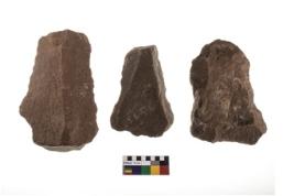 | Description / विवरण | The objects are Stone Tools. These stone tools are of material Quartzite. The object are Cleavers. These objects are complete in condition but are eroded sligthly. |
